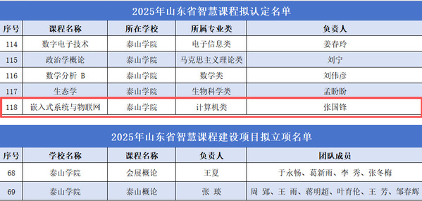 近日,山东省高等教育学会(山东省高等学校课程联盟)正式公布了2025年度省级智慧课程认定结果。信息科学技术学院副院长张国锋申报的《嵌入式系统与物联网》课程成功获评为山东省智慧课程。