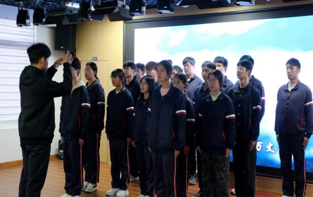 活动现场,各团支部以歌声传递爱国情怀,用青春旋律表达对祖国的热爱。2024级专升本4班团支部演唱的《我和我的祖国》,以整齐洪亮的和声,勾勒出长城蜿蜒、江河奔涌的壮美画卷,感染了现场听众。2025级人智1班团支部则以《强军战歌》点燃全场气氛,歌声中饱含对人民军队的敬意与青年守护国家的坚定决心。