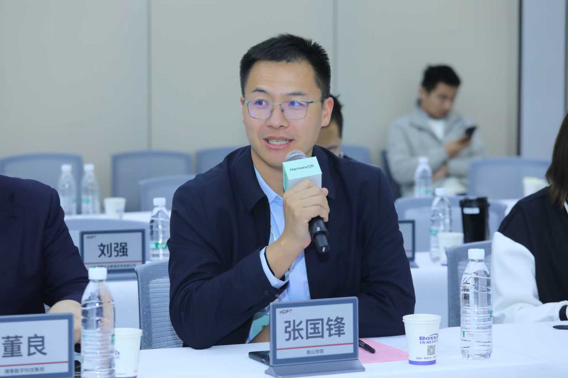 会议期间,学院行政负责人张国锋重点对泰山学院研究生招生进行了宣讲,分享了信息科学技术学院的信创人才培养实践案例,同期还就鸿蒙数字人才“一试多证”路径探讨、数字人才政企校联合培养机等议题分享了经验和建议。