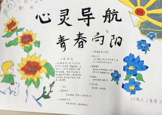 活动采用“宣传海报创作+心理班会”两种形式。在海报创作中,同学们用画笔描绘对“心灵导航”的理解,一系列主题突出、构思巧妙的作品在校园内形成了一道独特的“心理风景线”。心理班会则聚焦常见心理困扰,通过案例讨论、情景模拟等互动环节,引导学生深入思考与交流。