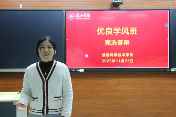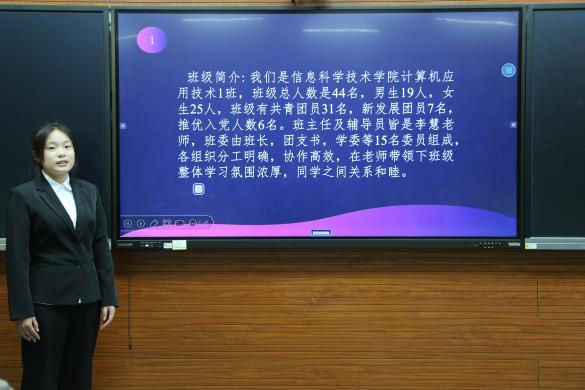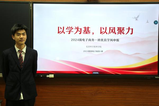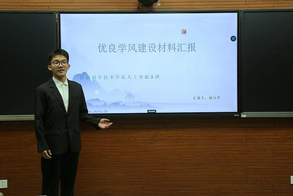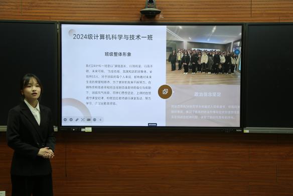 活动伊始,杨宸作开场发言。她指出,本次评选既是对各班级学风建设成果的集中展示,也是一次互相学习、共同提升的机会。在答辩环节,各候选班级负责人围绕课堂纪律、学科竞赛、宿舍文明、社会实践、心理健康等关键维度,通过PPT展示、数据分析和案例分享,系统汇报了班级在思想引领、学业发展、班级管理和实践创新等方面的举措与成效,充分展现了信息科学技术学院学子勤奋严谨、务实创新的优良学风,以及班级自我管理、自我教育、自我服务的治理能力。