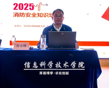 为切实增强学生消防安全意识,提升火灾防范与应急处置能力,11月25日,信息科学技术学院在新生二部大学生活动中心成功举办消防安全专题讲座。本次讲座特邀岱岳区消防大队副大队长封金峰担任主讲。学院党委书记安其心、党委副书记庞圣杰,南校区管理办公室新生二部安全管理科科长程元超,学院学生辅导员刘康杰以及2025级学生代表参加活动。讲座由安其心主持。