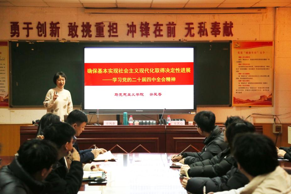 12月2日下午,学习贯彻党的二十届四中全会精神学校宣讲团成员、马克思主义学院教授亓凤香以“确保基本实现社会主义现代化取得决定性进展——学习党的二十届四中全会精神”为主题在信息科学技术学院理工楼A6017开展宣讲,学院党委书记安其心、辅导员杨宸及学生党员、入党积极分子等参加学习。