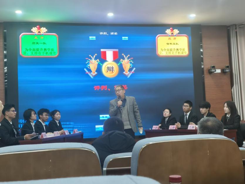 决赛围绕“为全面提升教学质量,是否支持无手机课堂”这一具有现实意义的辩题展开。现场气氛热烈,双方辩手思维敏捷、交锋激烈。我院队员沉着应对,展现出扎实的知识储备、清晰的逻辑架构与流畅的语言表达,赢得评委与观众的一致认可。赛后,评委从论点构建、论证技巧等角度进行专业点评,为辩手们提供了宝贵的提升方向