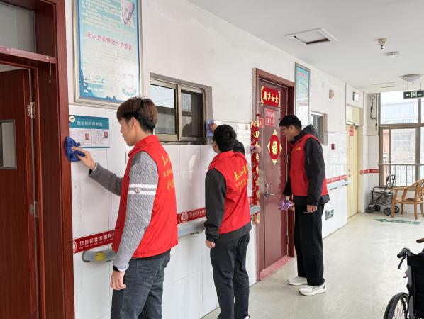 活动现场暖意融融,志愿者们提前做好分工,各司其职、默契协作,用真心与细心为老人们带来暖心体验。陪伴组的志愿者们围坐在老人身旁,与老人们促膝长谈,耐心倾听他们的过往故事,细致询问饮食起居和身体状况,用亲切的话语、真诚的陪伴驱散老人们的孤寂;服务组的志愿者们则拿起清洁工具,认真打扫敬老院公共区域,仔细整理老人房间物品,为老人们营造出整洁、舒适的居住环境。