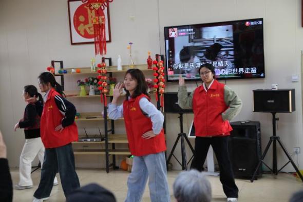 才艺表演环节将现场氛围推向高潮,志愿者们精心准备了唱歌、跳舞、小品等丰富多彩的节目。一首首经典老歌旋律悠扬,唤起老人们的青春回忆,一个个精彩节目接连上演,赢得现场掌声阵阵、笑语连连。表演间隙,志愿者们与老人们继续唠嗑谈心,老人们也分享起自己的人生阅历与奋斗故事,还暖心勉励同学们要珍惜韶华、勤学笃行,常怀感恩之心、常做暖心之事。