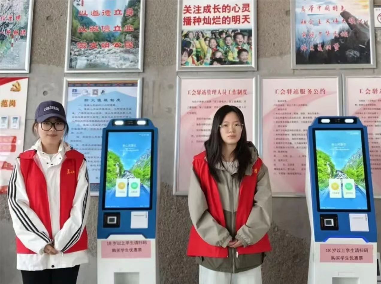 晨光映照,天外村游客中心已是人头攒动。志愿者们准时到岗,面带微笑迎接八方来客。“您好,购票请扫描这个二维码”“检票乘车请往这边排队”,面对游客的各类问题,志愿者们一一耐心解答。有的游客不熟悉线上操作,志愿者便手把手指导;有的老年游客行动不便,志愿者主动上前搀扶。