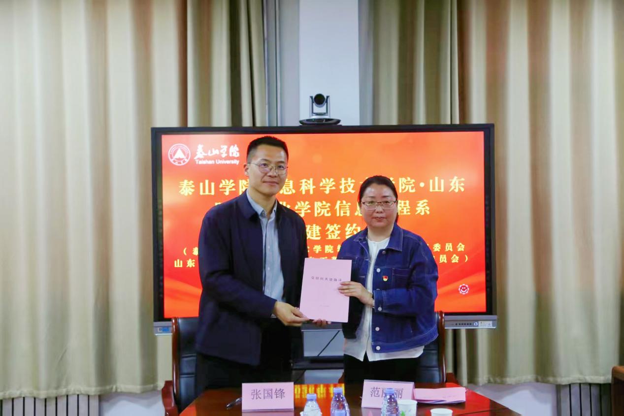 4月7日下午,信息科学技术学院软件智能教工党支部与山东服装职业学院信息工程系教师第二党支部开展党建共建签约暨“党建引领贯通培养教研协同共育英才”联合教研主题党日活动。山东服装职业学院信息工程系党总支书记刘凌、主任杨继鹏及教师第二党支部师生一行,信息科学技术学院党委书记安其心,副院长、软件智能教工党支部书记张国锋以及软件智能教工党支部委员参加活动。